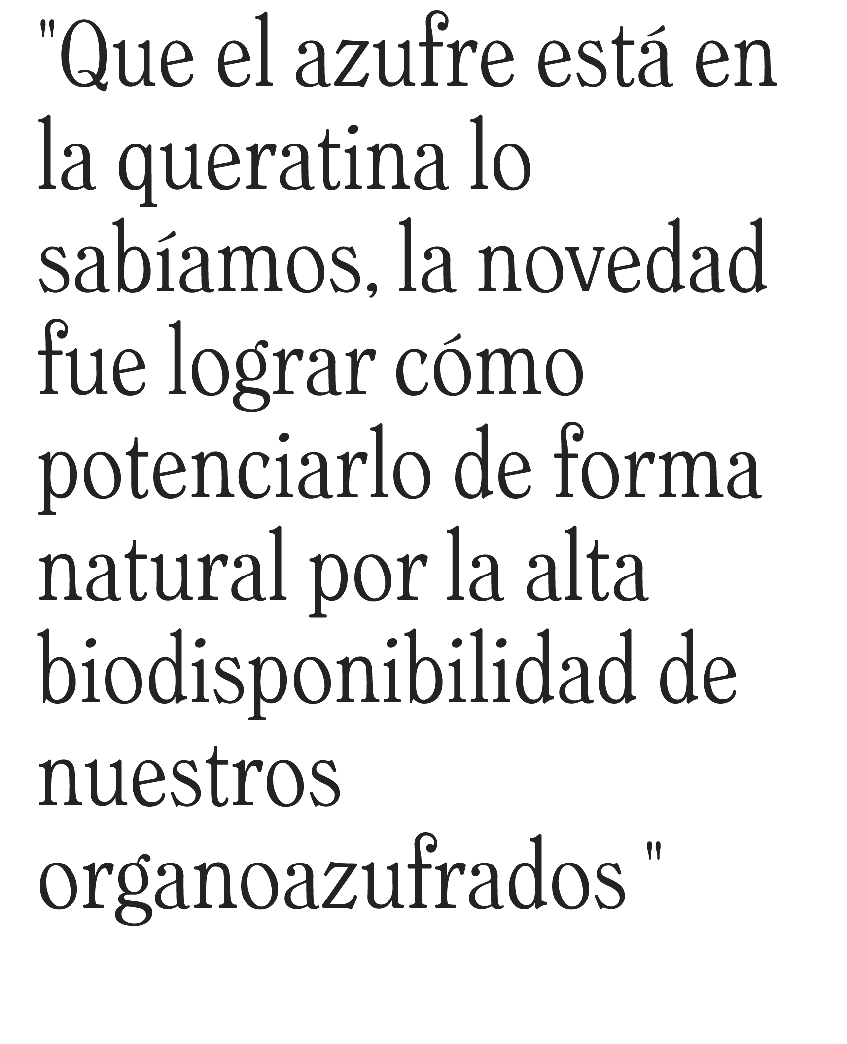 El azufre participa directamente en los puentes disulfuro que unen las cadenas de queratina, responsables de la resistencia, elasticidad y forma del cabello.
