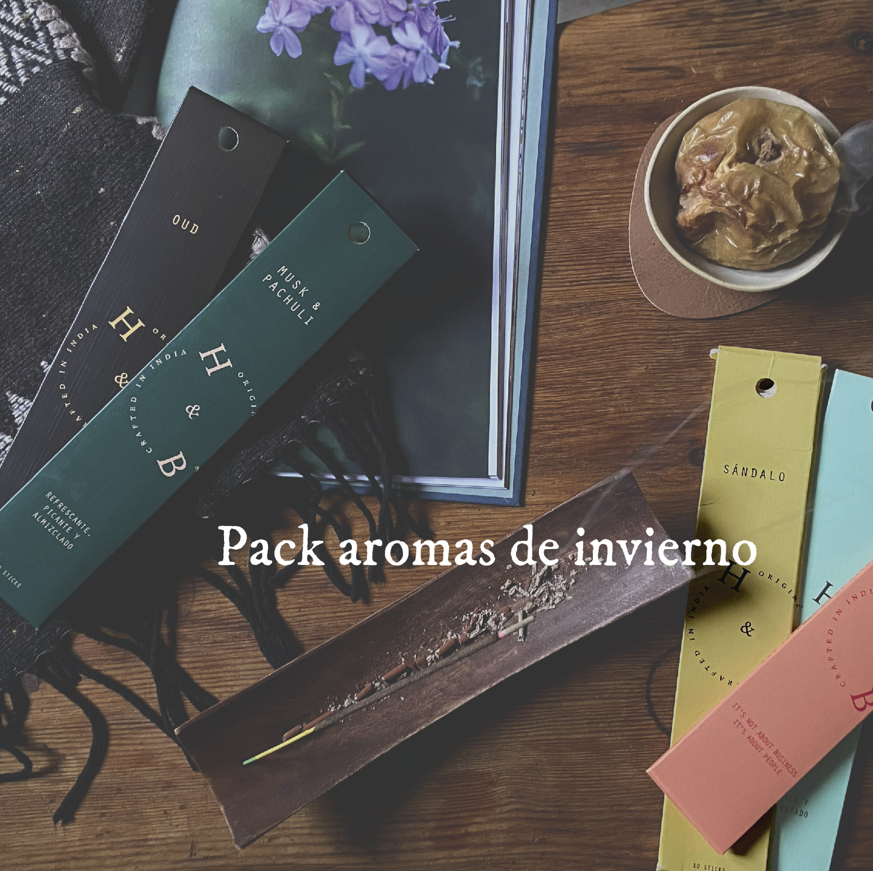Aromas de invierno es un pack especial de H&B Inciensos que reúne cinco aromas seleccionados por su afinidad con la temporada invernal. Durante el invierno los espacios se viven de otra manera: la luz es más suave, el ritmo se ralentiza y el hogar se convierte en refugio. Esta selección acompaña ese cambio con aromas más cálidos.